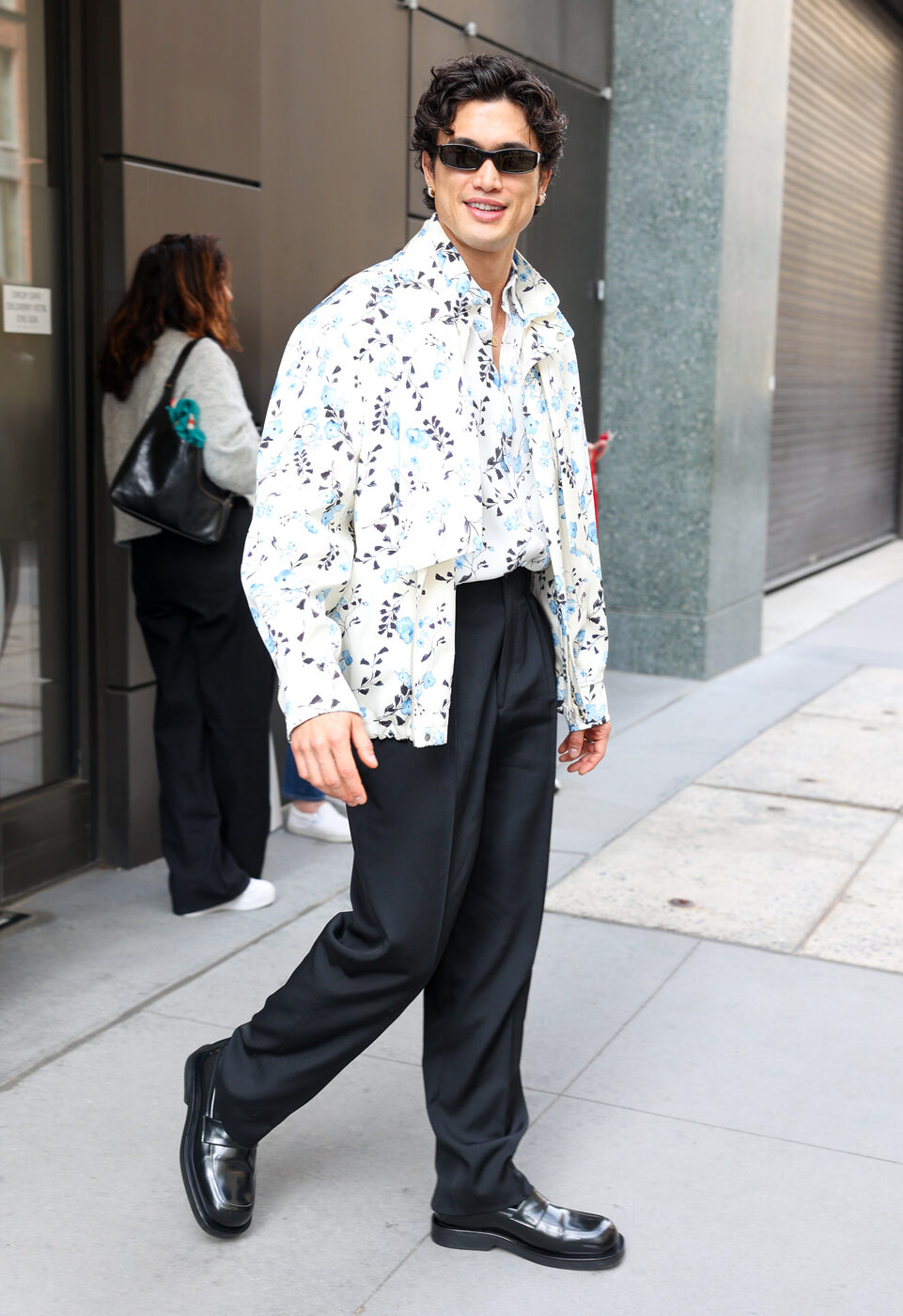 뉴욕에서는 또 다른 배우들이 봄 특유의 레이어링을 보여줬다. 톰 블라이스는 방송 굿모닝 아메리카 출연 후, 올블랙 스타일링을 비율로 풀어내며 신선함을 더했다. 뉴욕 브랜드 퍼블릭 스쿨의 크롭 기장 가죽 윈드브레이커를 입고, 볼륨감 있는 플리츠 팬츠를 강조한 것. 루크 에반스는 브로드웨이에서 더 록키 호러 픽처 쇼의 닥터 프랭크-엔-퍼터 역을 맡고 있는데, 켈리 클락슨 쇼를 나서며 노란 스웨이드 봄버를 어깨에 툭 걸쳤다. 날씨가 갑자기 더워질 때를 대비한 여유로운 연출이다. 찰스 멜턴은 브랜드 미스리데이트의 플로럴 재킷과 셔츠를 톤온톤으로 겹쳐 입으며 또 다른 방식의 봄 스타일을 보여줬다. 봄에 꽃무늬는 식상하다고들 하지만, 여전히 충분히 즐길 만하다.