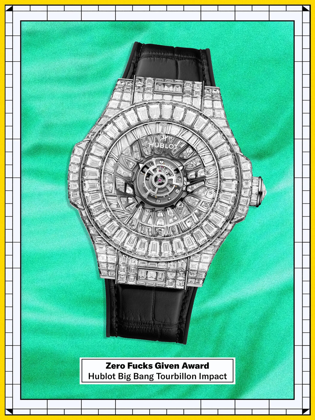 눈을 가늘게 뜨면 시간은 보이긴 한다. 하지만 그게 중요하지 않다. 500개의 다이아몬드가 박힌 이 시계는 소원 우물처럼 생겼고, 중앙 투르비용이 5일 파워리저브를 만들어낸다. 가격은 약 16억 원. 현실을 잠시 잊게 해주는 ‘쓸데없이 멋진’ 사치의 정점이다.