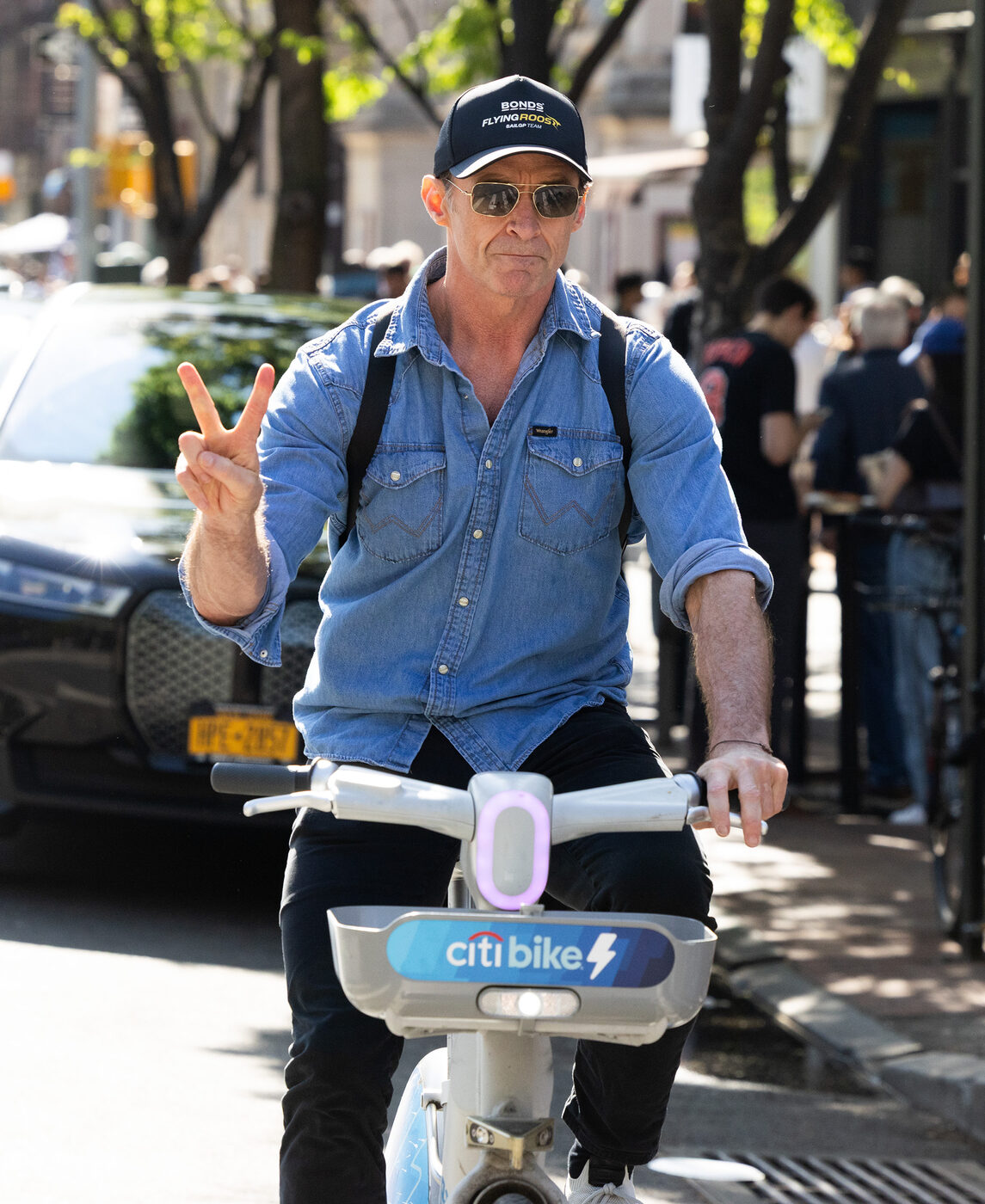 최근 휴 잭맨은 뉴욕에서 시티바이크를 타고 로어 맨해튼의 영화관으로 이동하는 모습이 포착됐다. 이동 중간중간 셀피를 찍고 사인을 해주고 악수를 나누는 모습도 보였다. 별다른 연출 없이, 그냥 자연스럽게 돌아다니는 모습이었다. 그리고 그 분위기에 맞게 스타일도 힘을 뺀 상태였다. 소매를 걷어 올린 데님 셔츠 하나, 편안하고 여유로운 느낌 그대로였다.