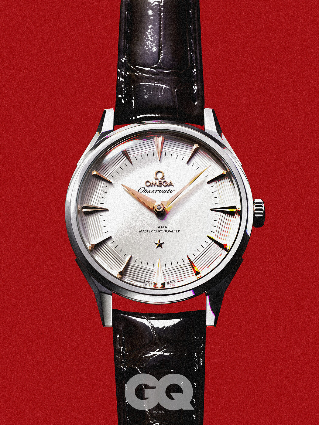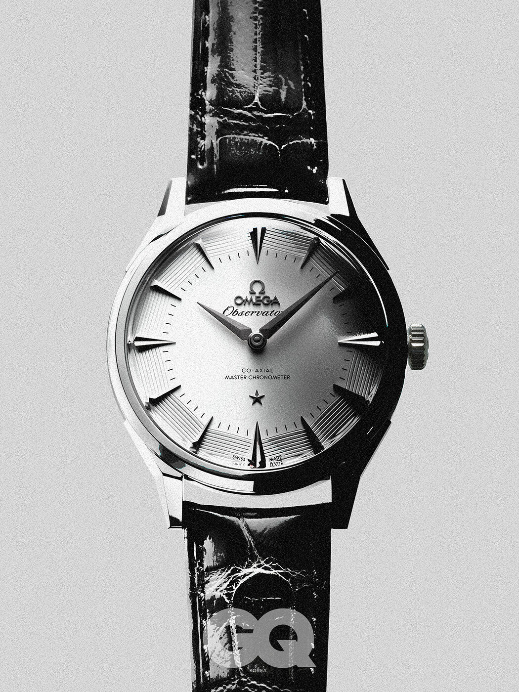 군더더기 없이 말간 실버 오팔린 다이얼에 상징적인 스타 로고와 앨리게이터 레더 스트랩을 결합해 간결한 미학이 빛을 발한다. 직경 39.4밀리미터의 크기는 유난스럽지 않고 심플해 드레스 워치의 모범이라고 부르고 싶다. 컨스텔레이션 옵저버토리 39.4MM 1천5백만원대, 오메가.