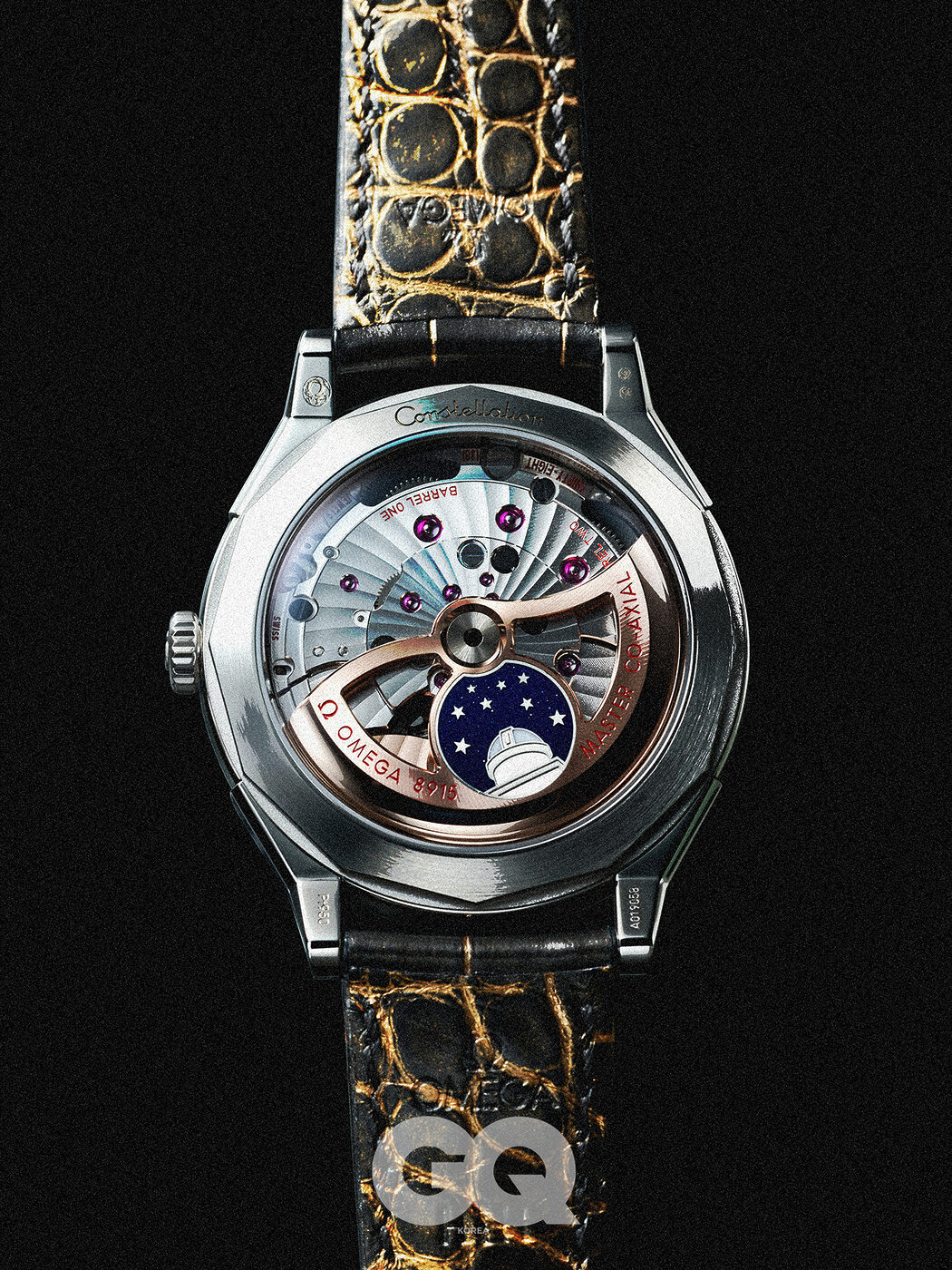 세드나™ 골드 소재의 칼리버 8915 로터에 컨스텔레이션의 상징인 천문대 메달리온을 장식했다. 다크 블루 어벤추린 글라스 에나멜과 화이트 오팔 에나멜로 각각 밤하늘과 천문대를 표현했다. 컨스텔레이션 옵저버토리 39.4MM 8천2백만원대, 오메가.