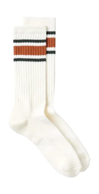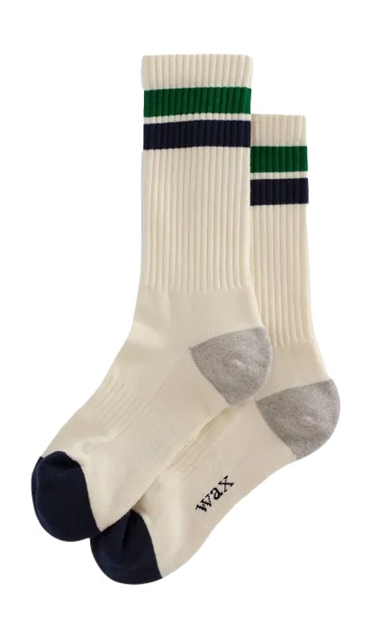 화이트나 아이보리 양말도 가능하지만, 반드시 깨끗하고 형태가 유지되어야 한다. 흐물거리는 체육용 양말은 피해야 한다. 루즈한 핏이라면 텍스처를 조금 더 강조할 수 있지만, 팬츠가 단정하면 양말도 정리된 형태를 유지해야 한다.