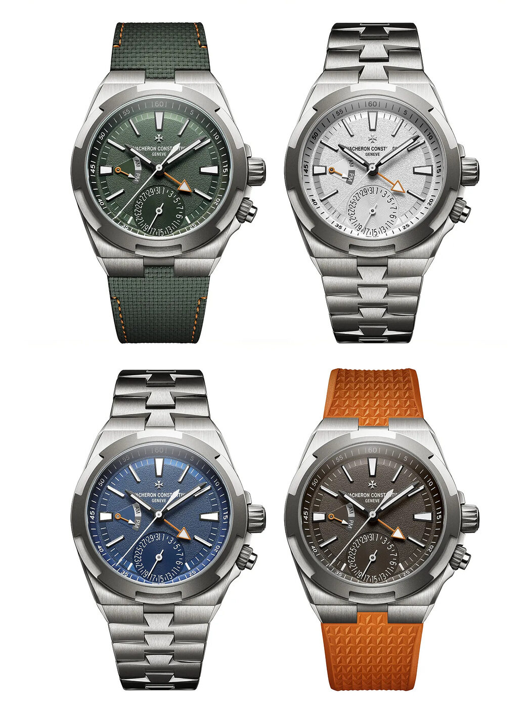 이 정도 역사를 가진 브랜드라면 드레스 워치가 강점인 건 당연하다. 하지만 최근에는 스포츠와 현대적인 영역에서도 확실한 존재감을 보여주고 있다. 오버시즈 듀얼 타임은 약 10년 가까이 이어진 모델인데, 이번 카디널 포인츠 컬렉션은 그린, 브라운, 화이트, 블루 네 가지 컬러로 출시됐다. 보통 이런 컬러 구성이라면 비금속 스트랩을 떠올리겠지만, 이 모델은 티타늄 케이스로 제작됐다. 노치 형태의 베젤 역시 견고한 스포츠 워치 느낌을 강화하고, GMT 기능이 실용성을 더한다. ‘나는 바쉐론 콘스탄틴 취향이 아니다’라고 생각했던 사람도 혹할 만한 모델이다.