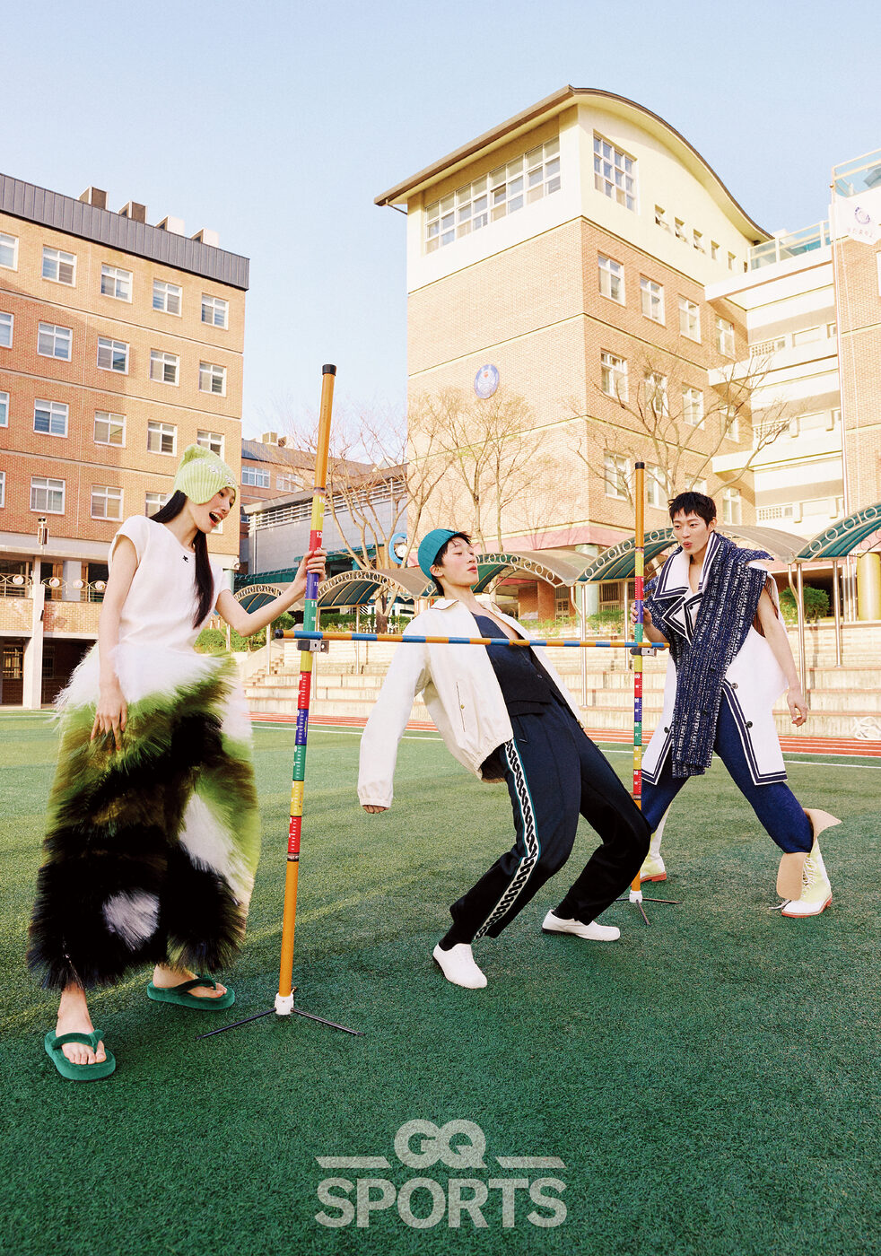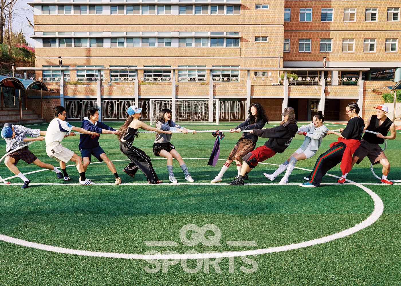 (왼쪽부터) 블루 스트라이프 포플린 재킷, 몽클레르. 블루 도트 포인트 쇼츠, 루이 비통. 네이비 플랫 스니커즈, 벨루티. 블루 볼 캡, 노아. 블루 커브 슬리브 폴로 톱, 보기 보이즈. 스트라이프 쇼츠, 펜디. 블루 스트라이프 스니커즈, 아디다스 오리지널스. 브라운 하울 선글라스, 생 로랑 by 안토니 바카렐로. 네이비 니트 톱, 폴로 랄프 로렌. 님버스 라이트 재킷, 선러브. 나일론 쇼츠, 산드로 옴므. 브라운 스니커즈, 뉴발란스. 블랙 스트랩리스 버블 톱, 블랙 미드 라이즈 트랙 팬츠, 모두 알렉산더 왕. 헬로 키티 볼 캡, 뉴에라. 블루 셔츠, 그레이 니트, 모두 미우미우. 블랙 벌룬 스커트, 에스 이프 칼리. 멜란지 니트 삭스, 몽클레르. 화이트 스니커즈, 골든구스. 멀티 컬러 스카프, 에르메스. 그레이 니트, 레드 브라 톱, 블랙 서스펜더 스커트, 화이트 스니커즈, 모두 프라다. 글리터 니삭스, 크리스찬 루부탱. 블랙 후드 집업, 레드 트랙 팬츠, 모두 앙팡 리쉬 데 프리메. 블랙 스니커즈, 뉴발란스. 브라운 레인 후드, 르메르. 화이트 니트 점프 수트, 에르메스. 그레이 집업, 꼼데가르송. 화이트 올스타 니하이 스니커즈, 컨버스. 그레이 워머, 룰루레몬. 블랙 백넘버 티셔츠, 코치. 웹 스트라이프 트랙 팬츠, 구찌. 레드 프레임 아이웨어, 미우미우. 레드 코튼 재킷, 렉토. 블루 스니커즈, 컨버스, 블랙 베스트, 르메르. 브라운 쇼츠, 질 샌더. 레드 스니커즈, 캠퍼. 레드 메시 캡, 노아.