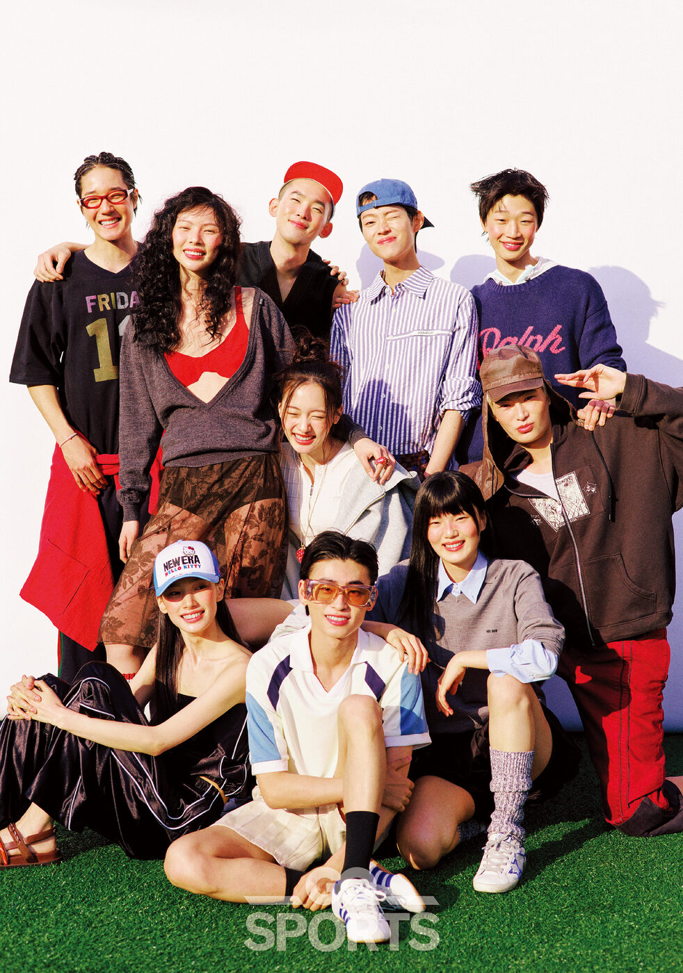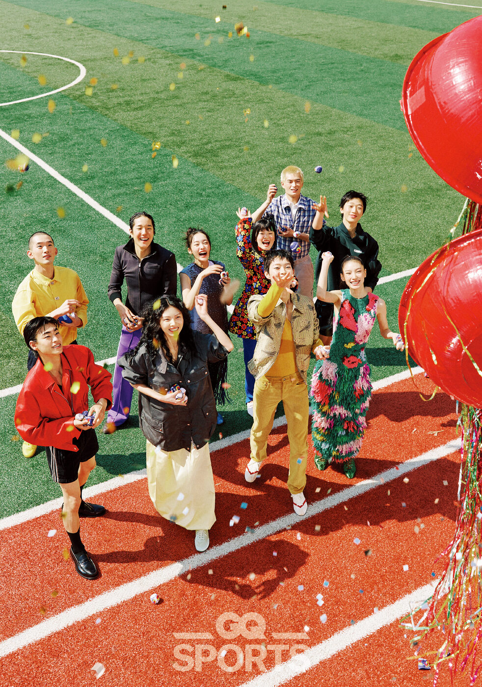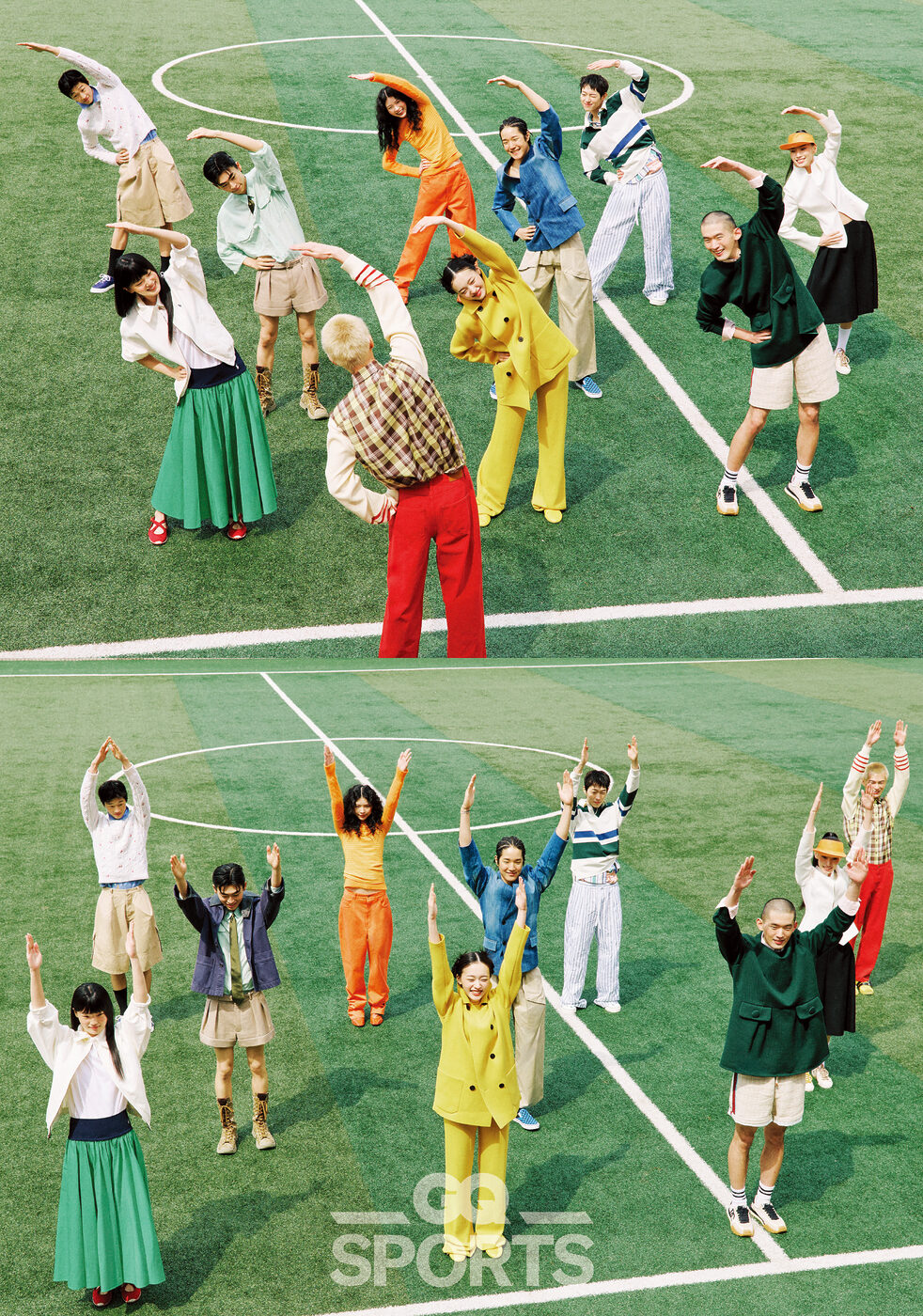 (왼쪽부터) 블루 바시티 재킷, 굿브랜드. 스트라이프 쇼츠, 베르사체. 화이트 스니커즈, 메종 키츠네. 화이트 톱, 마린 세르. 블루 나일론 팬츠, 스톤 아일랜드. 옐로 스니커즈, 컨버스. 블루 앤 그레이 레이어드 톱, 마린 세르. 블랙 트랙 쇼츠, 아디다스 오리지널스. 핑크 스니커즈, 컨버스. 네이비 니트 톱과 레드 쇼츠, 레드 스니커즈, 모두 프라다. 레드 하프 슬리브 저지 톱, 준지. 브라운 레더 스커트, 본봄. 블랙 스니커즈, 골든구스. 럭비 톱, 타미 힐피거 맨. 스트라이프 톱, 스노우피크. 브라운 쇼츠, 토즈. 스트라이프 쇼츠, 테클라. 레드 포인트 스니커즈, 호간.