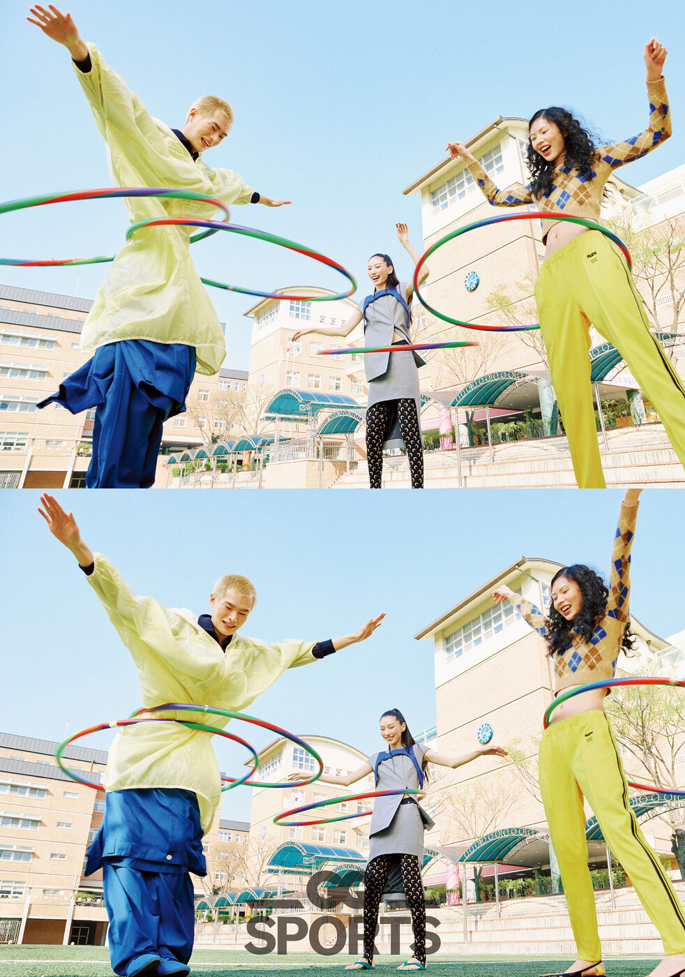 (왼쪽 위부터 시계 방향으로) 블랙 백넘버 티셔츠, 코치. 웹 스트라이프 트랙 팬츠, 구찌. 레드 프레임 아이웨어, 미우미우. 레드 코튼 재킷, 렉토. 그레이 니트, 레드 브라 톱, 블랙 서스펜더 스커트, 화이트 스니커즈, 모두 프라다. 블랙 베스트, 르메르. 레드 메시 캡, 노아. 블루 스트라이프 포플린 재킷, 몽클레르. 블루 도트 포인트 쇼츠, 루이 비통. 블루 볼 캡, 노아. 네이비 니트 톱, 폴로 랄프 로렌. 님버스 라이트 재킷, 선러브. 블랙 후드 집업, 레드 트랙 팬츠, 모두 앙팡 리쉬 데 프리메. 블랙 스니커즈, 뉴발란스. 브라운 레인 후드, 르메르. 블루 셔츠, 그레이 니트, 모두 미우미우. 블랙 벌룬 스커트, 에스 이프 칼리. 멜란지 니트 삭스, 몽클레르. 화이트 스니커즈, 골든구스. 화이트 니트 점프 수트, 에르메스. 그레이 집업, 꼼데가르송. 딸기 펜던트 목걸이, 스와로브스키. 블루 커브 슬리브 폴로 톱, 보기 보이즈. 스트라이프 쇼츠, 펜디. 블루 스트라이프 스니커즈, 아디다스 오리지널스. 브라운 하울 선글라스, 생 로랑 BY 안토니 바카렐로. 블랙 스트랩리스 버블 톱, 블랙 미드 라이즈 트랙 팬츠, 모두 알렉산더 왕. 헬로 키티 볼 캡, 뉴에라.