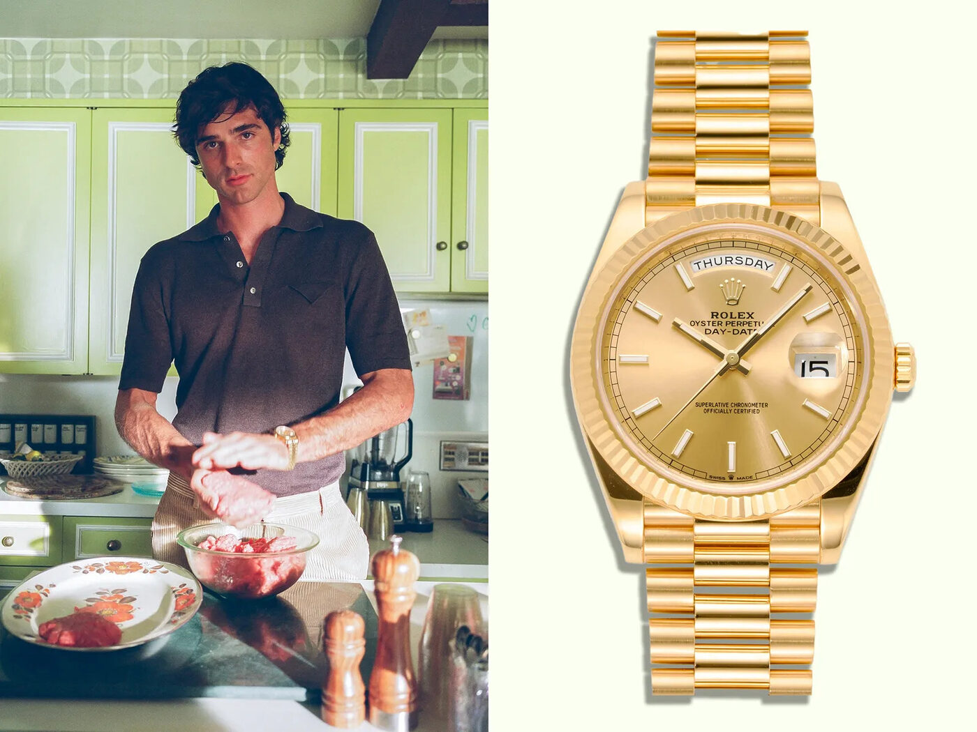 그의 상황이 얼마나 더 나빠질지는 앞으로의 전개에서 드러날 것이다. 하지만 적어도 한 가지는 분명하다. 평소에는 절제된 까르띠에 시계를 즐겨 착용하는 제이콥 엘로디가, 화면 속에서 큼지막한 골드 롤렉스를 차고 활보하는 모습은 꽤 흥미로운 장면이었다. 화면 안이든 밖이든, 이만큼 직관적이고 과감한 존재감은 좀처럼 찾기 어렵다.